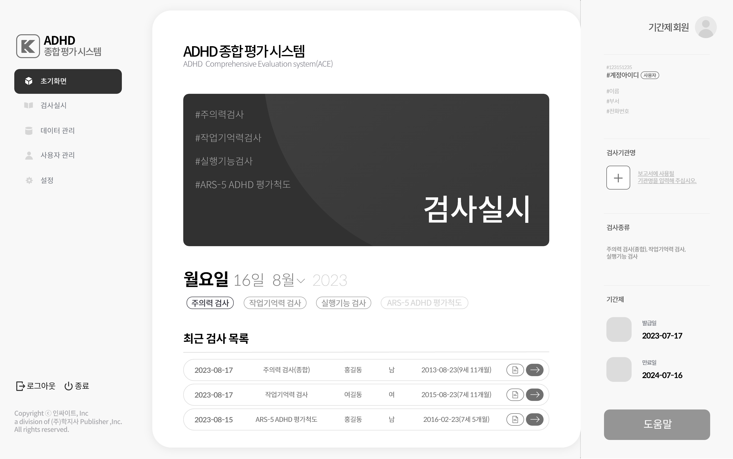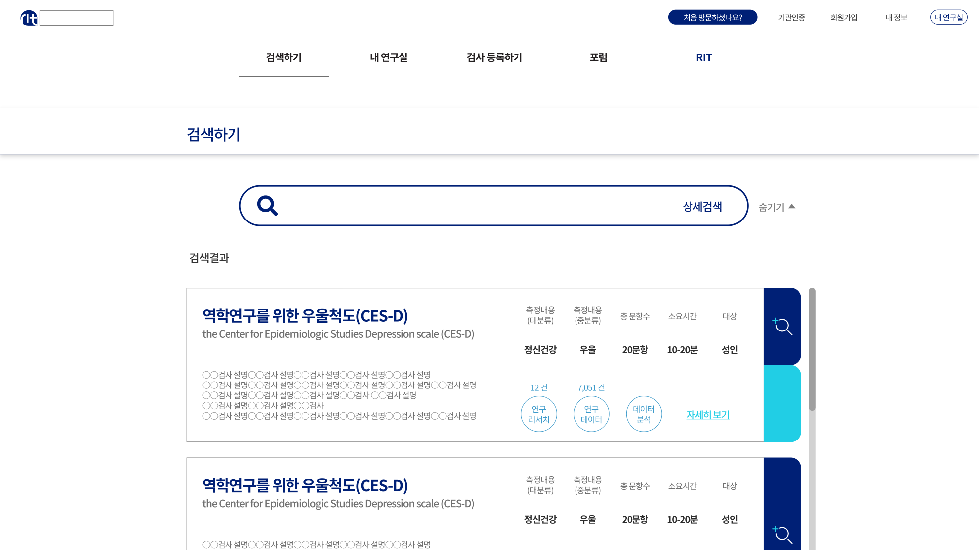 일반적인 논문 검색과 스크랩 기능을 포함해 웹 사이트에서 직접 검사 문항 구성하고 출시심사를 제안 할 수 있도록해 개발루트 확장예상